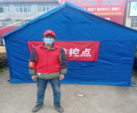 自2020年2月5日至今,在天门市三乡路的值守点,他头戴小红帽,身穿红马甲,危难之处显身手,扮演着不同的角色,为附近的居民排忧解难。